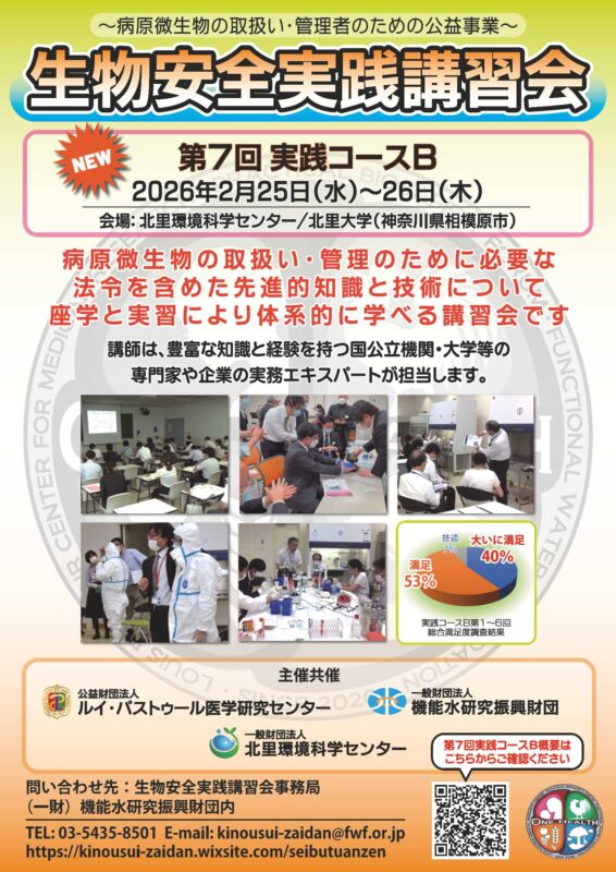 【イベント情報】を更新しました。 生物安全実践講習会(第7回実践コースB)の開催案内(開催:令和8年2月25日(水)~ 26日(木)) 下記リンクをご参照ください。 イベント情報 生物安全実践講習会(第7回実践コースB)の開催案内(開催:令和8年2月25日(水)~ 26日(木))