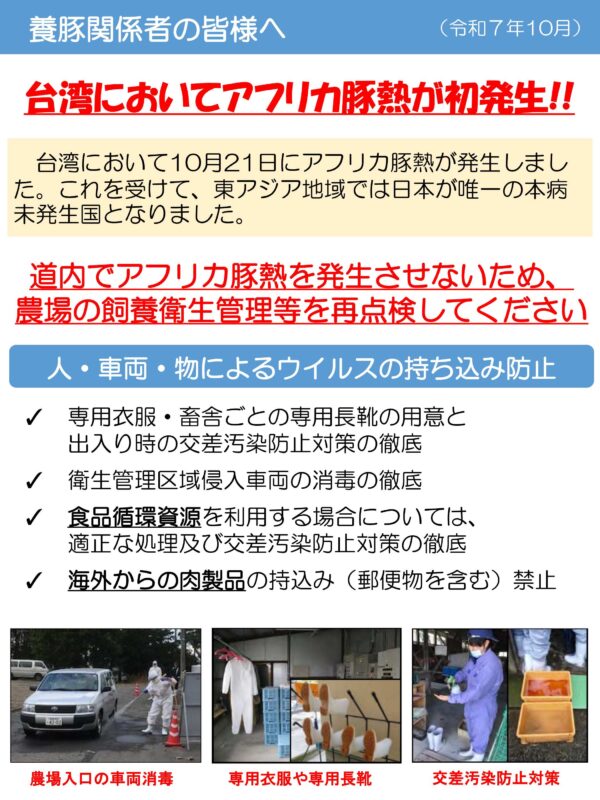 台湾におけるアフリカ豚熱の発生を踏まえた防疫対策の再徹底について(畜産第1595号/令和7年(2025年)10月29日)