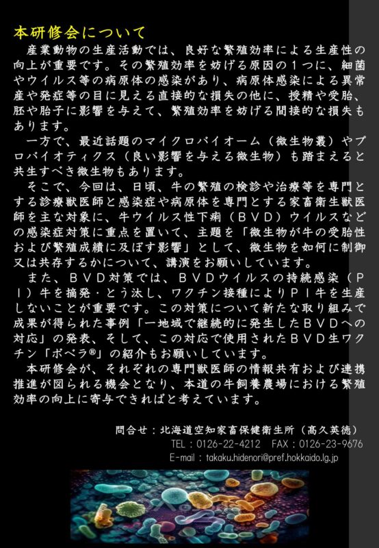 (1)「微生物が牛の受胎性および繁殖成績に及ぼす影響〜如何にして制御・共存すべきか?〜」